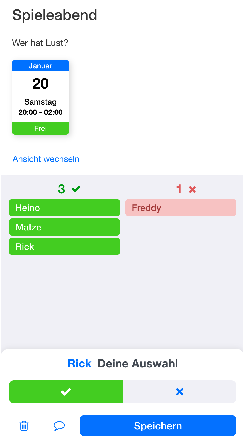 Teilnehmer können mit einem Klick ihre Meinung äußern, ohne sich durch komplizierte Optionen hindurchzuarbeiten. Die Ja/Nein-Umfrage eignet sich ideal für schnelle Abstimmungen, Meinungsbilder oder klare Entscheidungen in Gruppen.